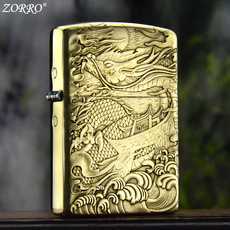 正品ZORRO防风煤油打火机黄铜蚀刻二代弹珠机芯龙凤呈祥男士礼