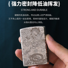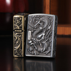 黄铜个性创意雕刻环绕龙凤呈祥防风砂轮煤油打火机